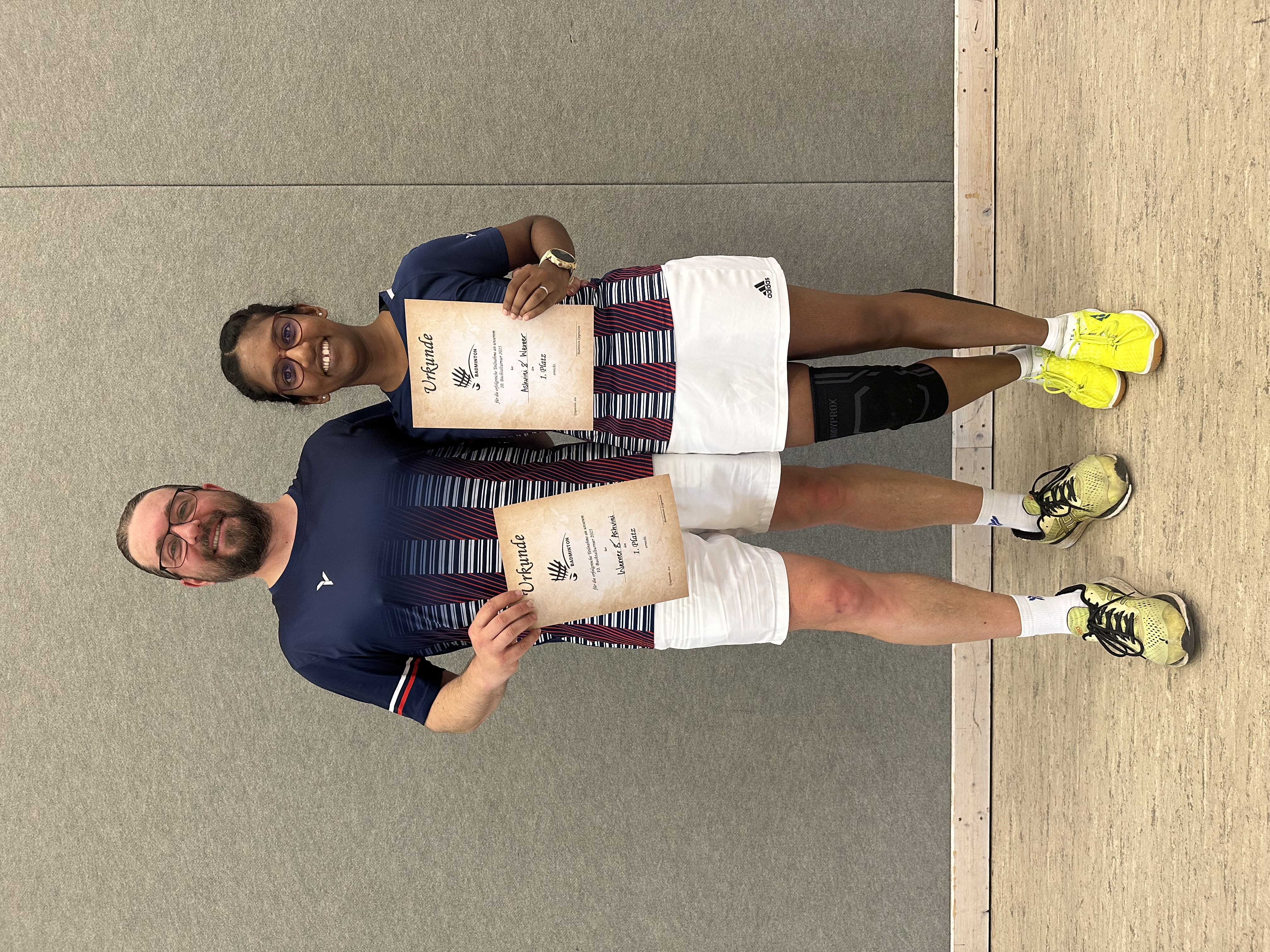 Hermine konnte mit ihrer älteren, unerfahrenen Partnerin gegen die jungen und erfahreneren Hobbyspielerinnen nicht mithalten und verlor leider alle Spiele.Ashvini und ihre Partnerin aus Augsburg konnten hingegen – auch in umkämpften Begegnungen – das Finalspiel mit 22:20 und 21:19 für sich entscheiden und somit den Turniersieg im Damendoppel holen. 🥇